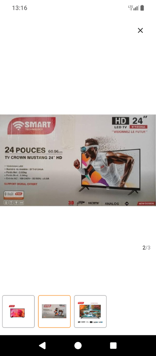 Découvrez la TV Smart 24 pouces HD LED, parfaite pour des soirées cinéma à la maison. Dotée de la connectivité HDMI et USB, elle offre une expérience visuelle immersive avec une superbe qualité d'image. Idéale pour un espace compact, elle devient un complément parfait pour toute maison moderne. Profitez de vos émissions préférées en streaming avec cette TV multifonctionnelle.