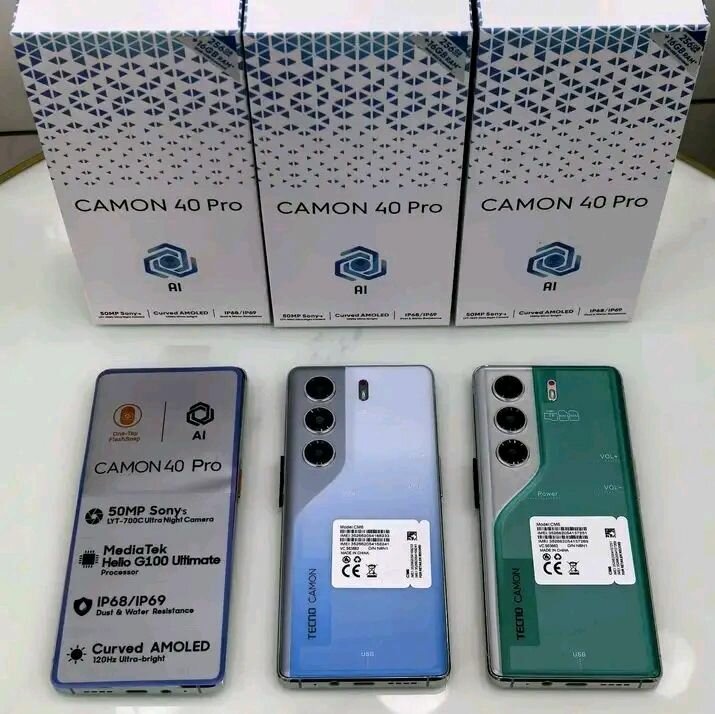 Découvrez le Camon 40 Pro : un smartphone révolutionnaire avec appareil photo Sony 50MP, écran AMOLED incurvé 120Hz, et résistance IP68. Idéal pour les amateurs de technologie.
