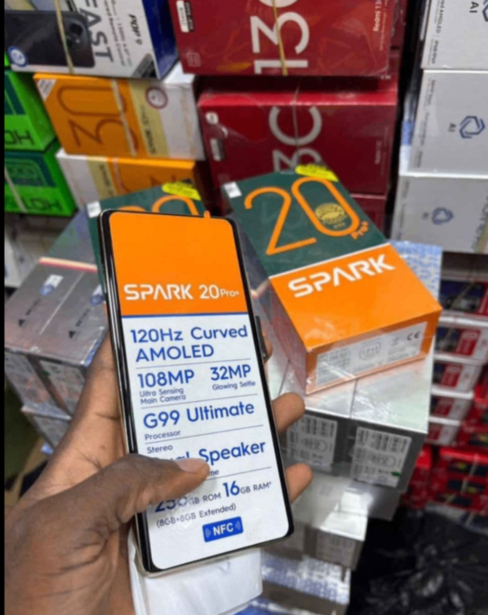 Découvrez le SPARK 20 Pro avec écran AMOLED incurvé 120Hz, appareil photo 108MP et selfie 32MP. Processeur G99 pour des performances ultimes et son stéréo immersif. Idéal pour capturer chaque instant et profiter de vos médias en haute qualité. Inclut 256Go ROM et 16Go RAM.