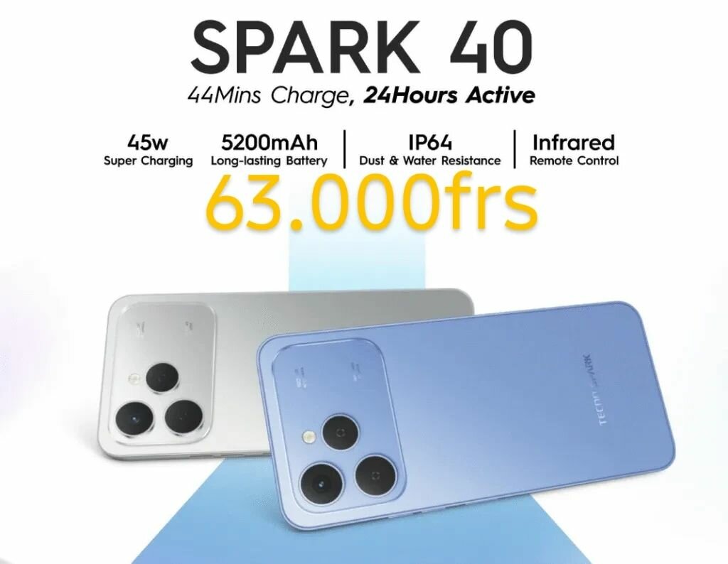 Découvrez le Spark 40 avec une batterie de 5200mAh pour une journée complète d'autonomie. Son super chargement 45W redonne vie en seulement 44 minutes. Résistant à l'eau et à la poussière avec l'indice IP64, ce smartphone est idéal pour toutes vos aventures. Profitez également de sa télécommande infrarouge intégrée.