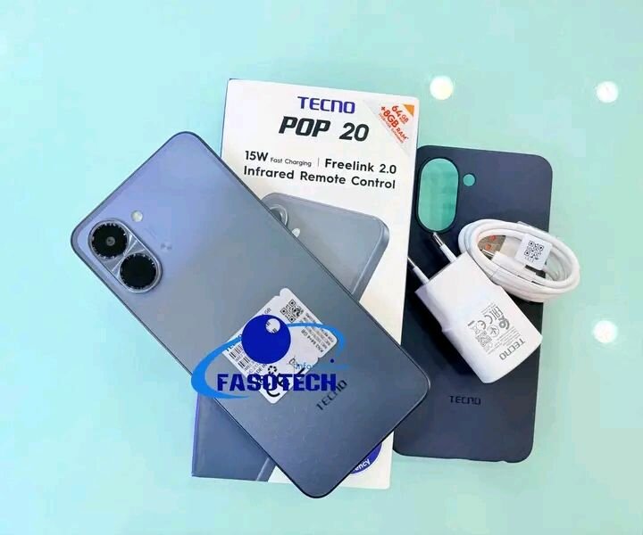 Découvrez le smartphone Tecno Pop 20 avec recharge rapide 15W, contrôle infrarouge et design élégant. Le choix idéal pour rester connecté partout avec style et efficacité.