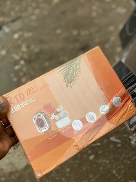 Pack complet blanc : smartwatch, écouteurs sans fil, chargeur et accessoires. Idéal pour cadeau high-tech. Produit neuf.