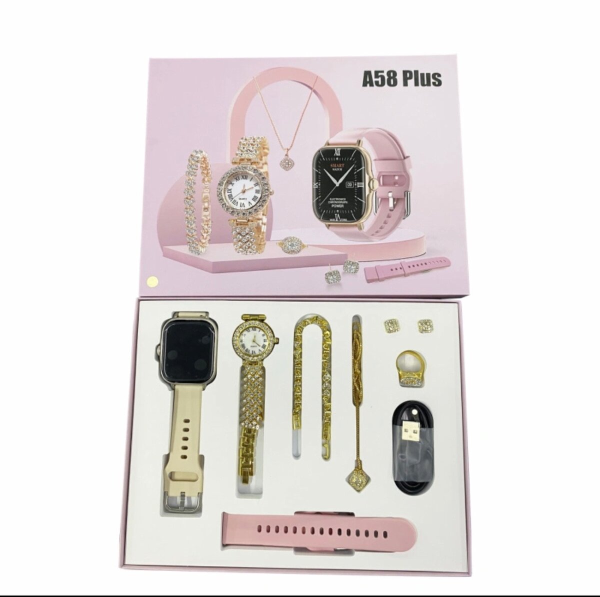 A smartwatch for ladies that comes with Necklace and bracelet and also comes with earrings. Performs all the necessary functions of a smartwatch. Also long lasting battery