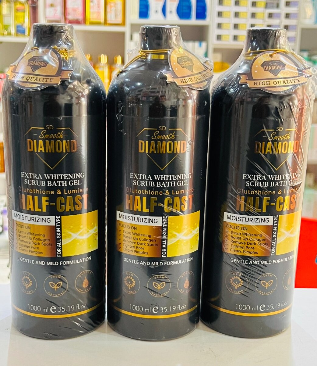 Smooth Diamond extra whitening half cast shower gel help to reduce the production of melanin, which can lead to a more even skin tone and reduce the appearance of dark spots and hyperpigmentation.it whitens the skin nicely and naturally.it also contains moisturizing properties that keeps the skin hydrated all day long