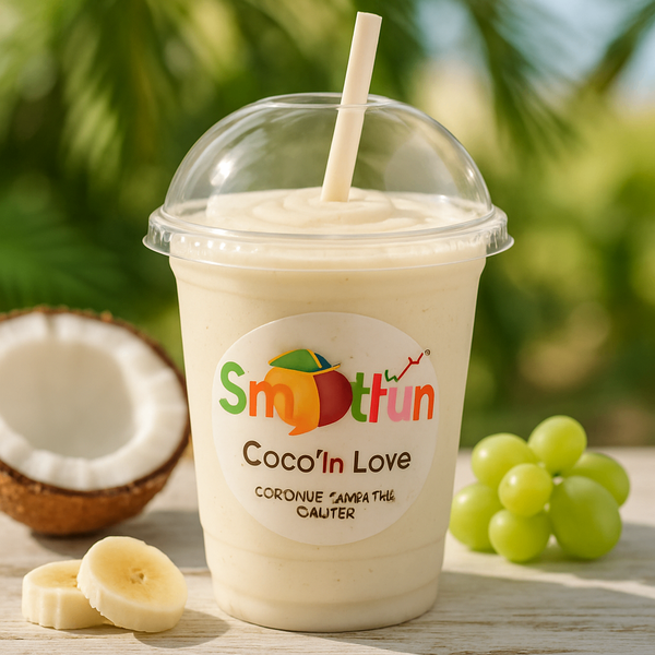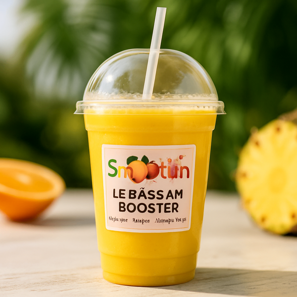Découvrez notre smoothie gourmand 'Le Crémeux Bassamois' - une fusion exotique de fruits tropicaux.