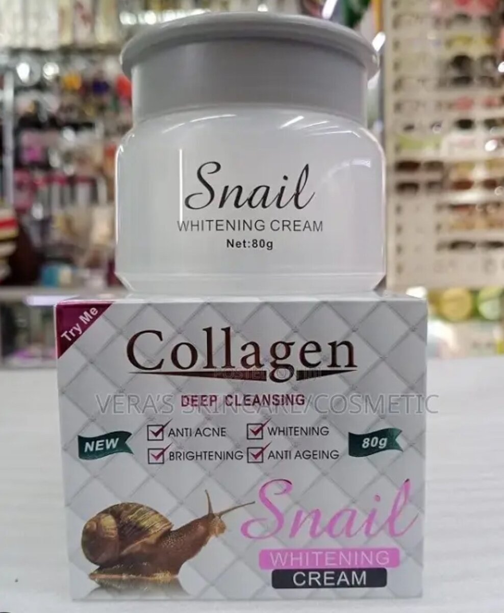 Achieve radiant skin with our Snail Whitening Cream, enriched with collagen for deep cleansing and anti-aging benefits. Ideal for evening skin tone and brightening your complexion. Perfect for daily use, it's your secret to glowing skin.