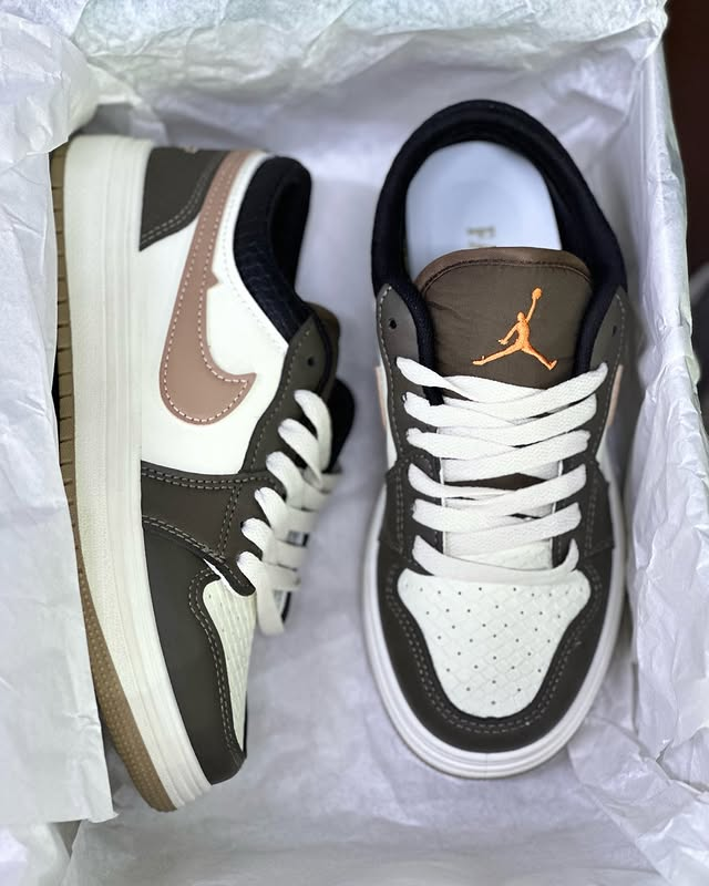 Кроссовки Air Jordan 1 low черный,белый,коричневый
