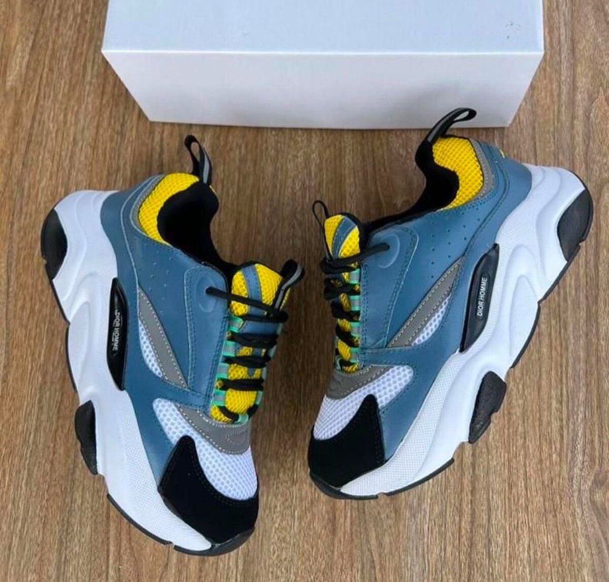 Découvrez ces sneakers Dior modernes, parfaits pour un look audacieux et tendance. Alliant confort exceptionnel et design éclatant avec des touches de bleu, jaune et blanc, ils sont idéaux pour le lifestyle urbain. Leur semelle robuste offre un excellent soutien pour la marche quotidienne. Parfaits pour compléter une tenue casual chic.