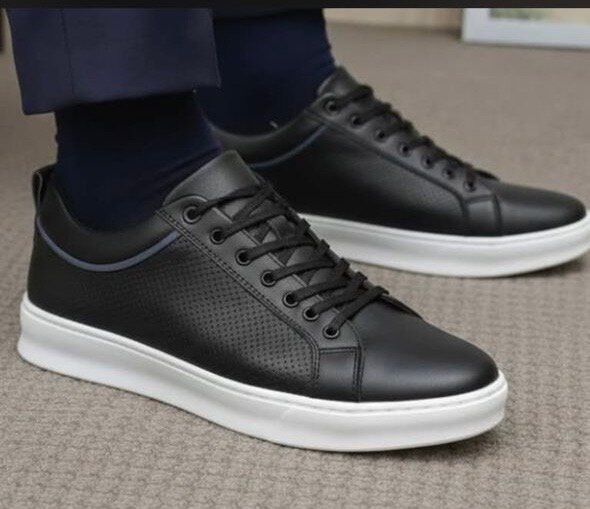 Élégants sneakers en cuir noir pour un look moderne et raffiné. Confortables et durables, parfaits pour un usage quotidien ou une occasion spéciale. Semelle blanche stylée et antidérapante. Idéal pour compléter une tenue casual chic.