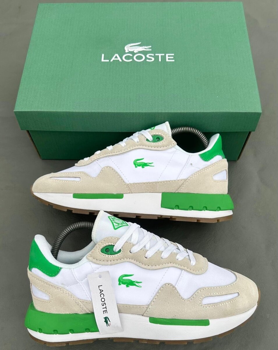 Découvrez les sneakers Lacoste en blanc et vert, alliant confort et style. Parfaites pour un usage quotidien ou sportif, ces chaussures ajoutent une touche élégante à toute tenue. Dotées d'une semelle adhérente et d'un design moderne, elles sont le choix idéal pour les amateurs de mode.