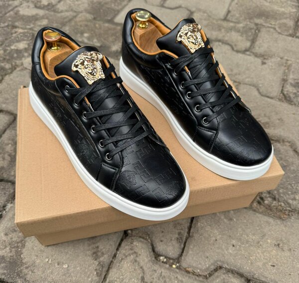 Découvrez ces sneakers noirs pour homme, embellis de détails dorés raffinés. Parfaits pour un look chic et urbain, ils allient confort et style. Idéal pour les sorties en ville ou les occasions spéciales.