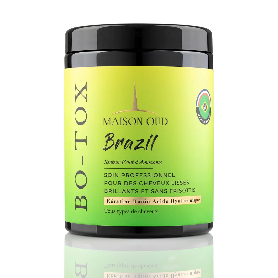 Soin professionnel pour cheveux lisses, brillants et sans frisottis. Contient kératine, tanin et acide hyaluronique pour renforcer et hydrater. Parfait pour tous types de cheveux.
