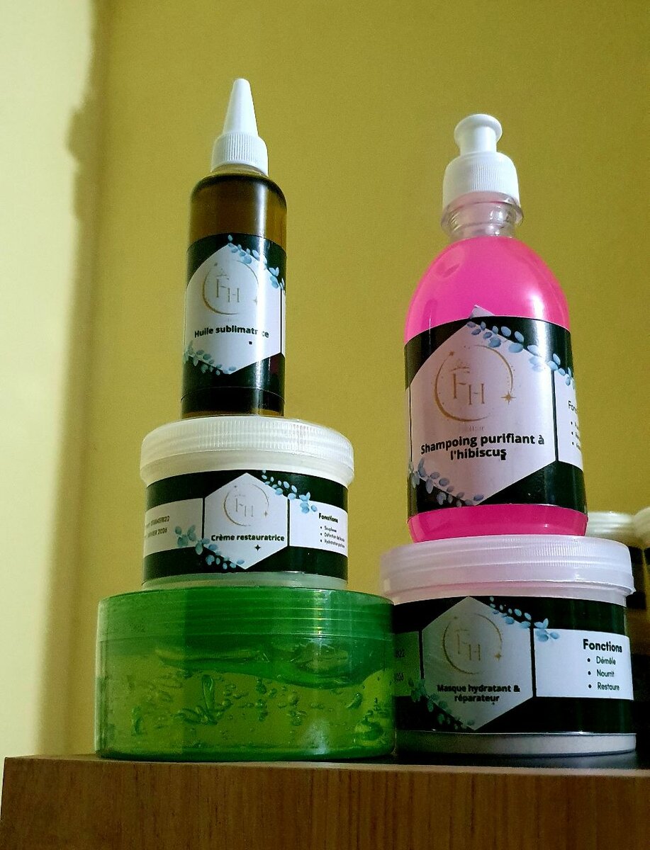 Transformez vos cheveux avec notre ensemble de soins naturels. Comprend un shampoing purifiant à l'hibiscus, huile revitalisante, masque capillaire, crème hydratante et un pot d'aloé verra. Parfait pour une chevelure saine.