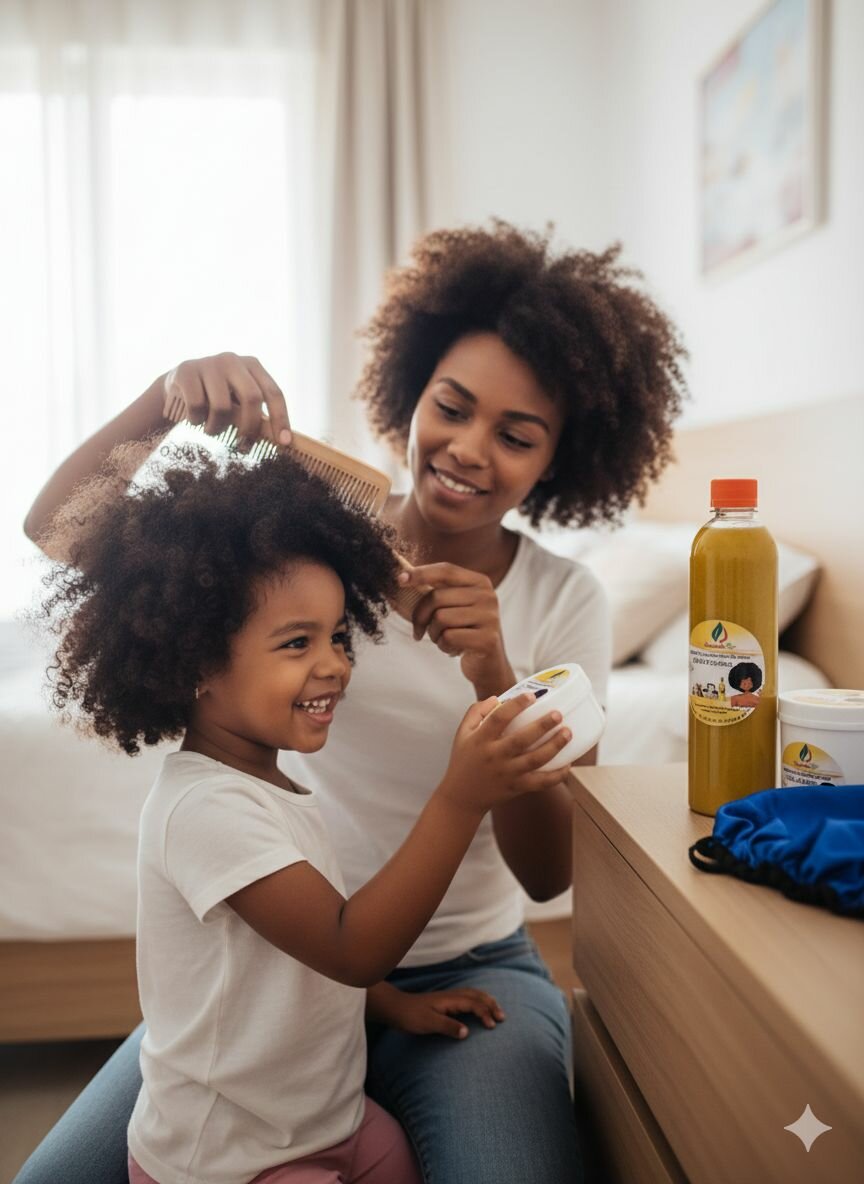 Découvrez notre gamme de soins naturels pour cheveux afro. Formulés avec des ingrédients naturels et nourrissants, ces produits sont idéaux pour hydrater et faciliter le peignage des cheveux crépus. Leur utilisation régulière garantit des cheveux sains et éclatants. Parfaits pour toute la famille.