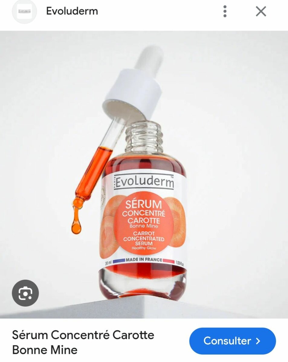 Redécouvrez l'éclat naturel de votre peau avec le Sérum Concentré Carotte d'Evoluderm. Formulé pour revitaliser et illuminer le teint, ce sérum riche en extraits de carotte nourrit intensément tout en offrant un effet bonne mine. Idéal pour tous types de peaux, il s'intègre facilement à votre routine quotidienne pour un teint radieux chaque jour.