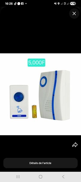 Sonnette sans fil moderne avec télécommande. Facile à installer, faible consommation d'énergie, idéale pour la maison ou le bureau. Choisissez entre plusieurs mélodies pour personnaliser votre carillon. Profitez de la technologie sans fil pour une utilisation pratique et efficace.