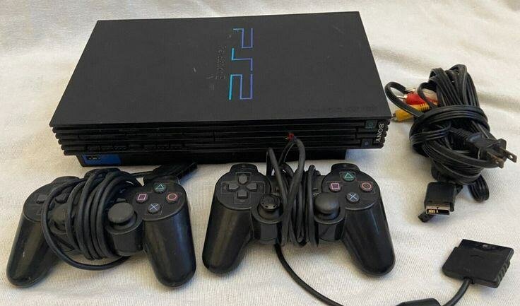 Console de jeu Sony PlayStation 2 Slim avec 2 manettes et accessoires complets. Profitez de vos jeux rétro favoris avec cette console compacte et performante.