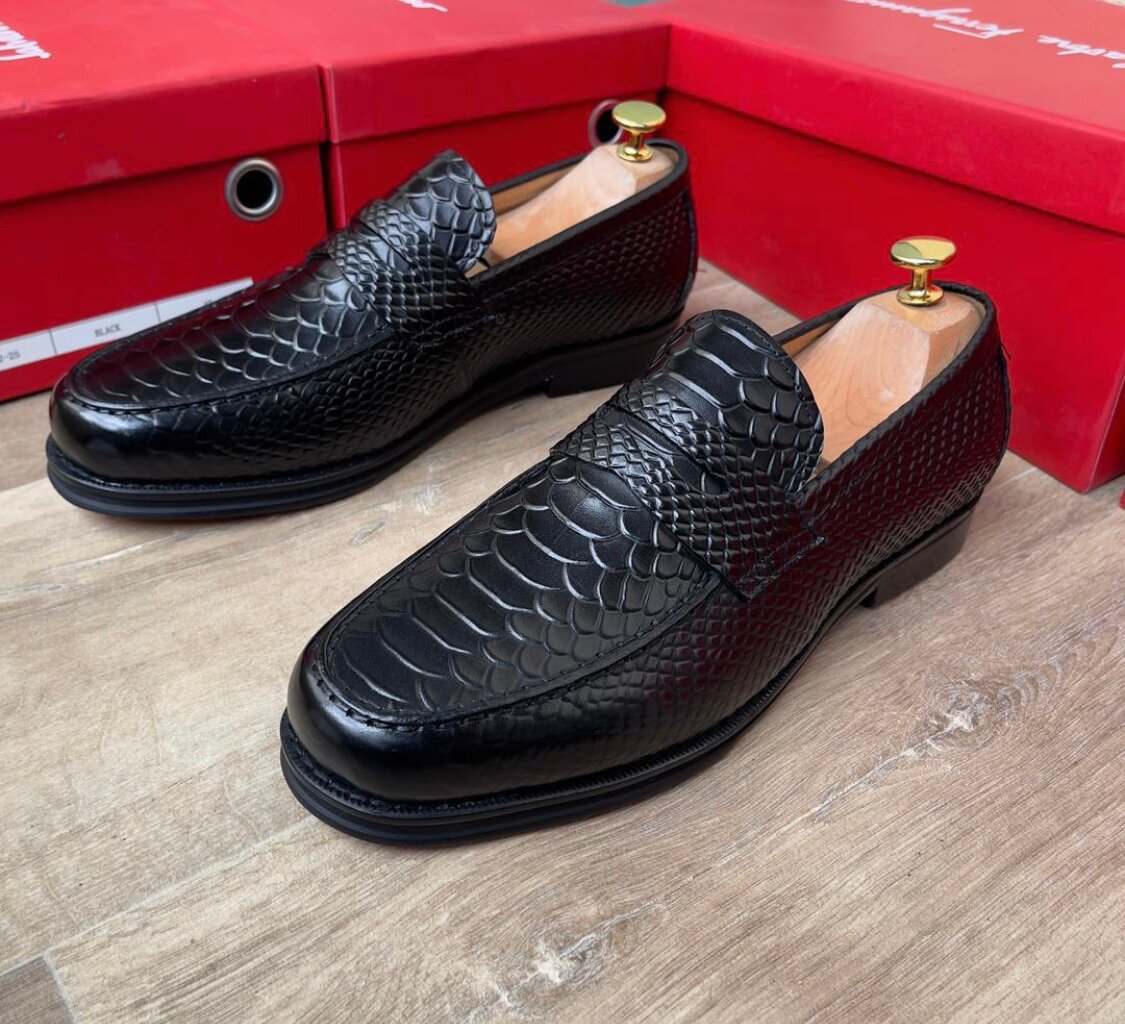 Découvrez ces mocassins en cuir exotique, élégants et sophistiqués, parfaits pour les occasions spéciales. Leur texture unique et leur confort exceptionnel en font un choix idéal pour l'homme moderne. Disponibles en plusieurs couleurs luxueuses, ils s'adaptent à diverses tenues. Un incontournable pour ajouter une touche de classe.
