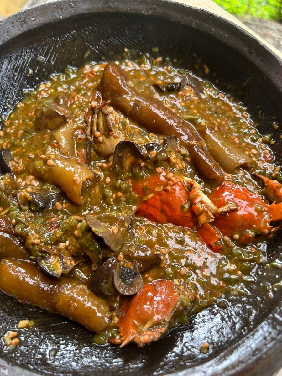 Découvrez notre délicieuse soupe de fruits de mer exotiques, un mélange savoureux de crabes frais et d'escargots, parfait pour les amateurs de fruits de mer. Accompagnée de fufu doux pour une expérience culinaire complète. Parfait pour un dîner raffiné ou une occasion spéciale. Savourez la richesse des épices et des ingrédients naturels. Idéal pour ceux qui recherchent une aventure culinaire authentique.