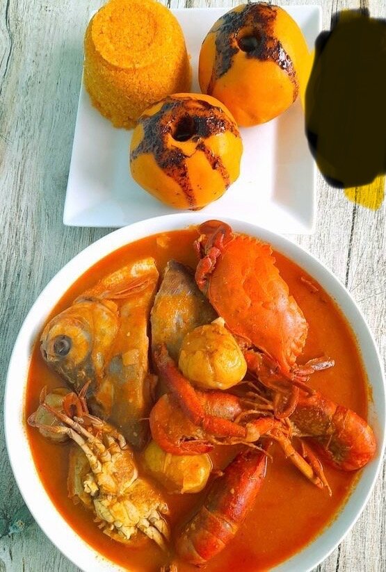 Savourez ce riche ragoût de fruits de mer avec un assortiment de poissons, crabes et crevettes, accompagnés de légumes. Parfait pour un dîner exotique et épicé, ce plat est un régal pour les amateurs de cuisine de mer.
