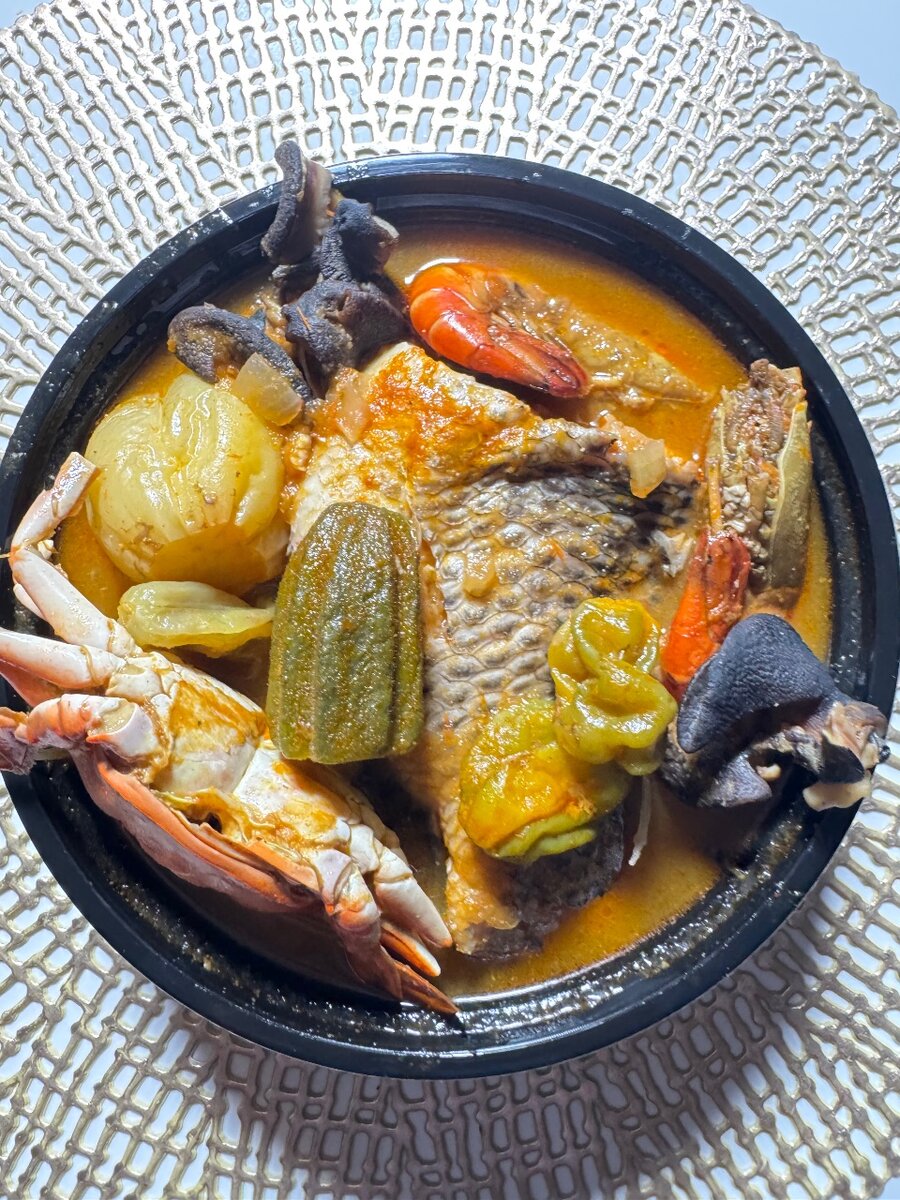 Soupe épicée de poisson et crabe