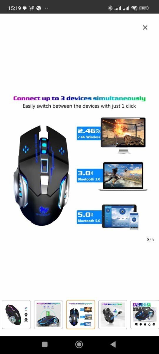 Souris De Jeu Sans Fil Rechargeable Avec 7 LED prix :