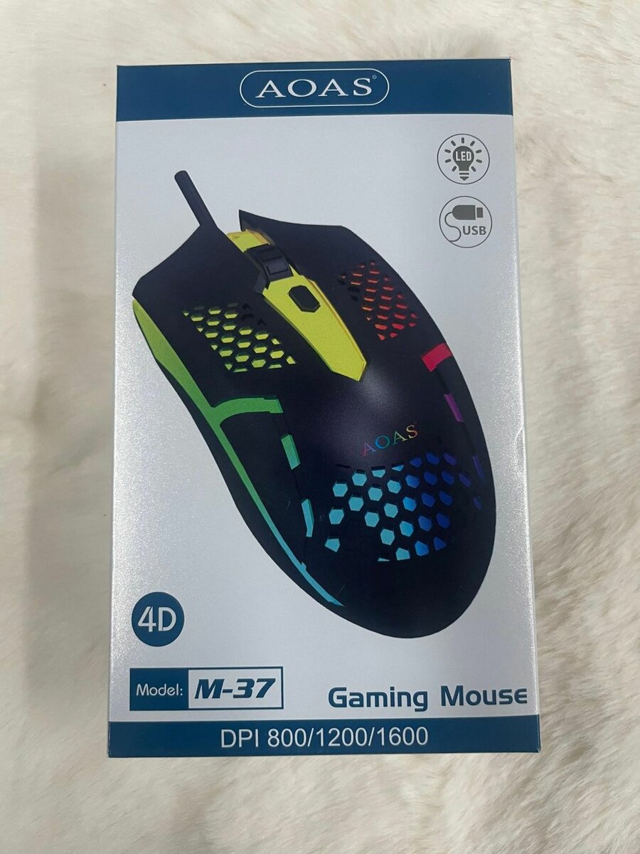 Découvrez la souris gaming AOAS M-37 avec rétroéclairage LED multicolore. Parfaite pour les gamers, elle offre une sensibilité réglable DPI (800/1200/1600) pour des mouvements précis. Profitez d'un design ergonomique et d'une connexion USB fiable. Idéale pour une expérience de jeu immersive.