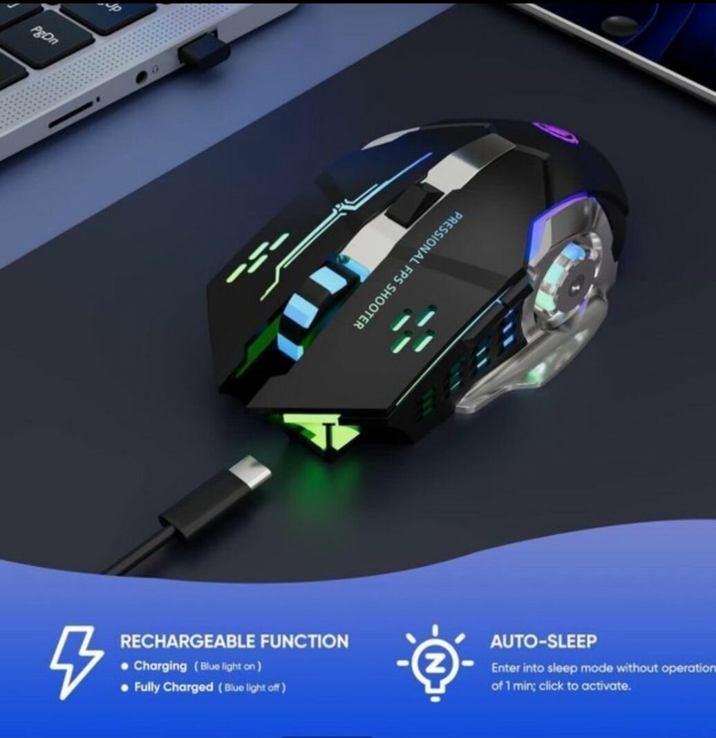 Profitez d'une expérience de jeu inégalée avec cette souris gaming rechargeable LED. Conçue pour les passionnés de jeux vidéo, elle offre une fonctionnalité de recharge pratique et un mode veille automatique pour économiser l'énergie. Son design ergonomique et ses lumières LED apportent une touche futuriste à votre setup. Idéale pour des sessions de jeu prolongées.