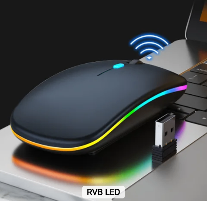 Transmission stable 2,4 G, Plug and Play, distance de connexion de 10 m Interface rechargeable Microre, ne payez plus les batteries Clic silencieux, ne plus interrompre les autres Lumière LED de respiration colorée