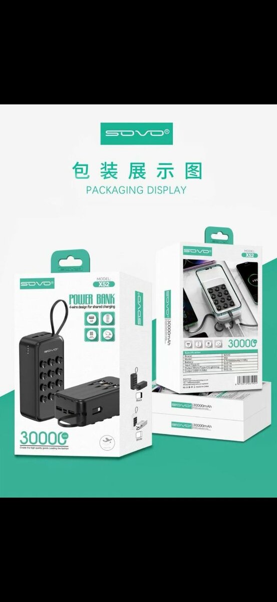 Conçus pour les aventuriers, les professionnels en déplacement ou ceux qui exigent le meilleur, cette power bank ultra-puissante est prête à alimenter votre vie numérique sans compromis. Avec son impressionnante capacité de 30 000mAh, rechargez vos smartphones, tablettes, ordinateurs portables ou même drones plusieurs fois, où que vous soyez. ites adieu aux pannes de batterie ! Optez pour la SOVO 30000mAh, la puissance massive alliée à la fiabilité et au style. Commandez la vôtre dès maintenant