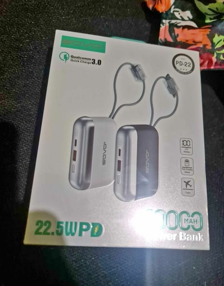 Profitez d'une recharge rapide avec le Power Bank SOVO de 10000mAh. Doté de la technologie Quick Charge 3.0, ce modèle compact est votre allié idéal pour recharger vos appareils où que vous soyez. Conçu pour les voyages et la mobilité, il assure une performance fiable de 22.5W pour vos besoins quotidiens en énergie.