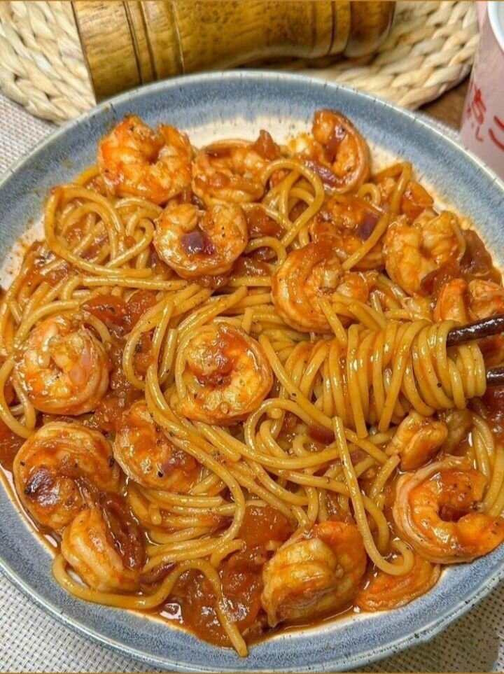 Savourez ce délicieux plat de spaghetti marié à des crevettes juteuses et une sauce épicée. Parfait pour un dîner savoureux et rapide. Idéal pour les amateurs de fruits de mer cherchant une touche épicée dans leur repas.