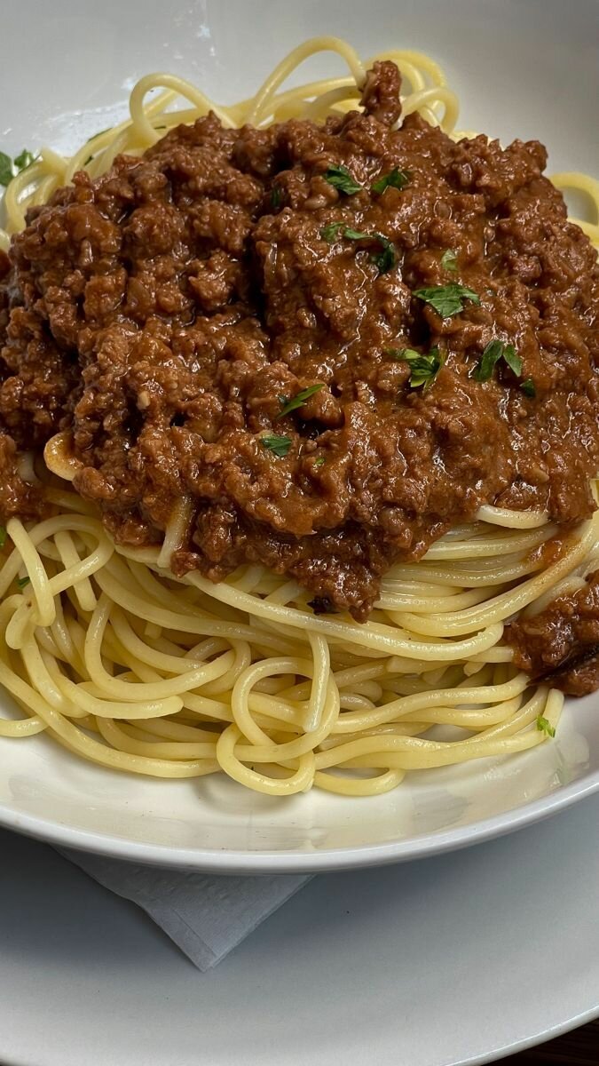 Découvrez notre délicieux Spaghetti Bolognese fait maison, préparé avec des ingrédients frais et une sauce riche en saveurs. Idéal pour un dîner en famille ou entre amis.