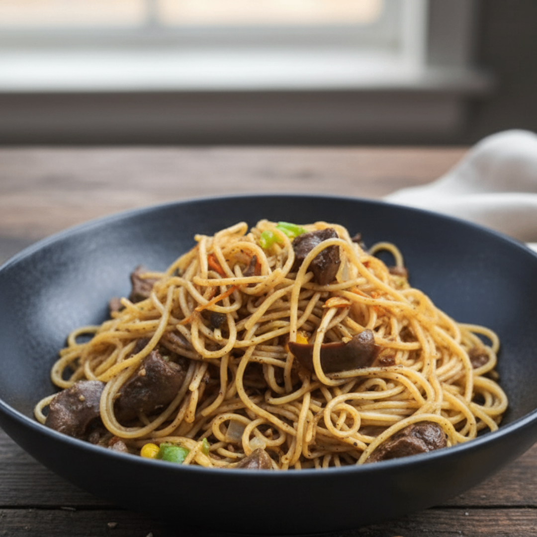 Spaghettis bien chauds, rognons fondants, un goût qu'on ne retrouve nul part à Abidjan, le meilleur Spaghetti rognon de babi.