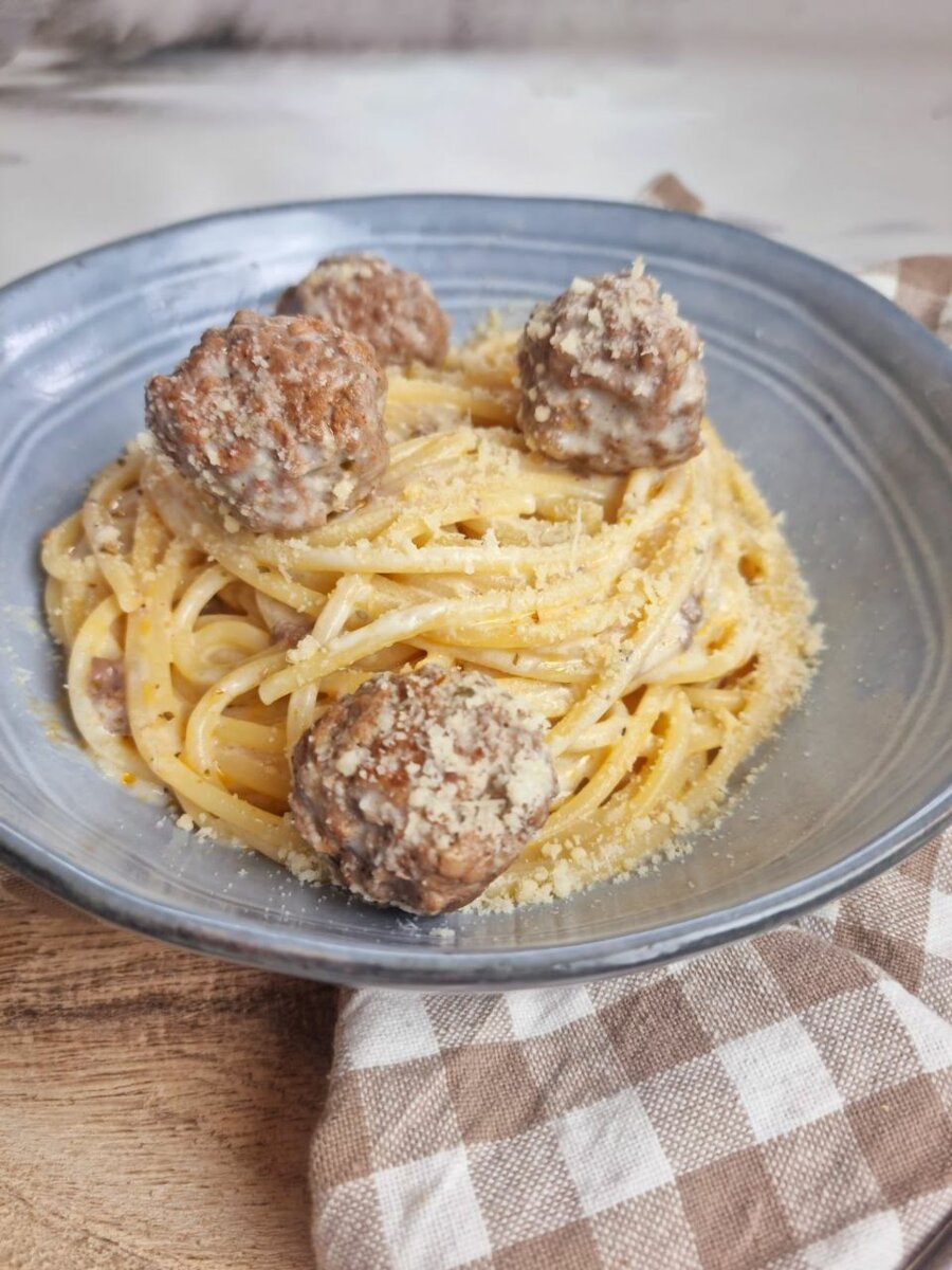 Découvrez notre spaghetti aux boulettes sauce crémeuse un délice pour les amateurs de cuisine italienne.