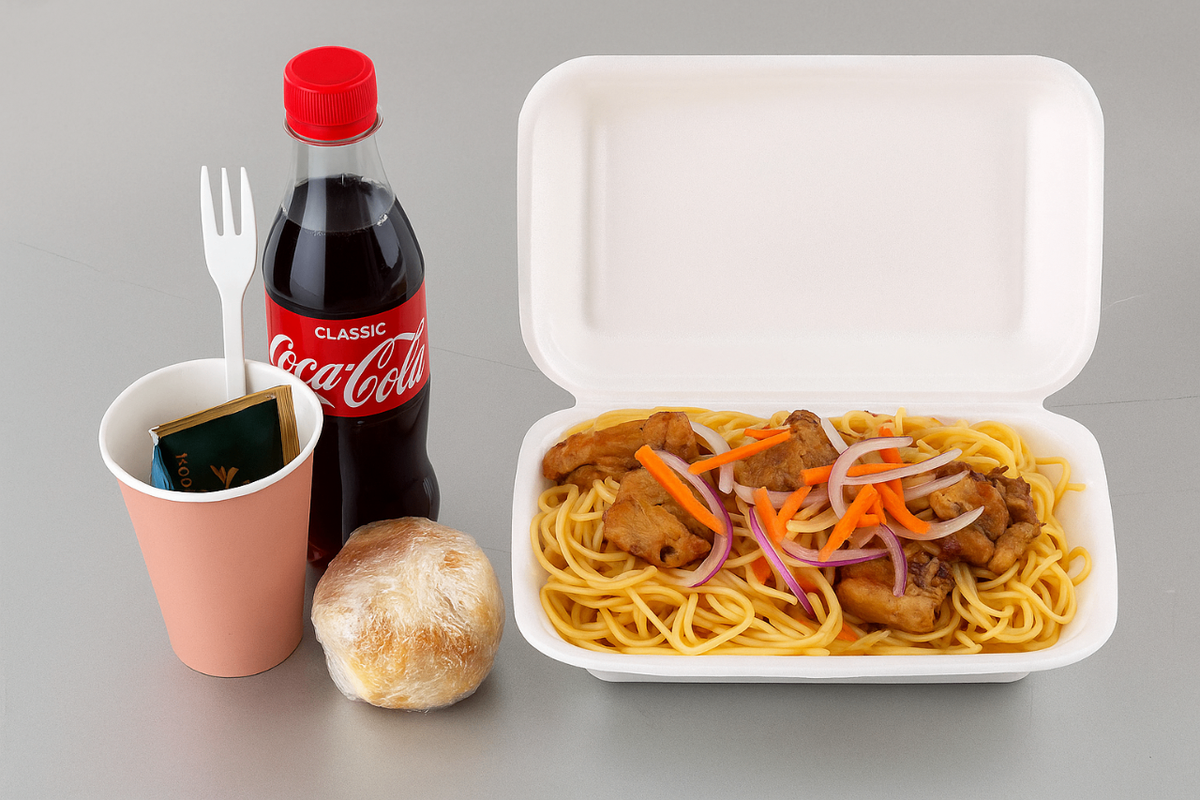 Spaghetti au rognon ou saucisse accompagné d'une boisson
