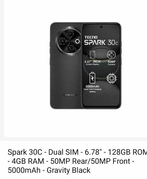 TECNO Spark 30C - 6.8'' - 128GB ROM - 4GB RAM - 50MP Rear/8M