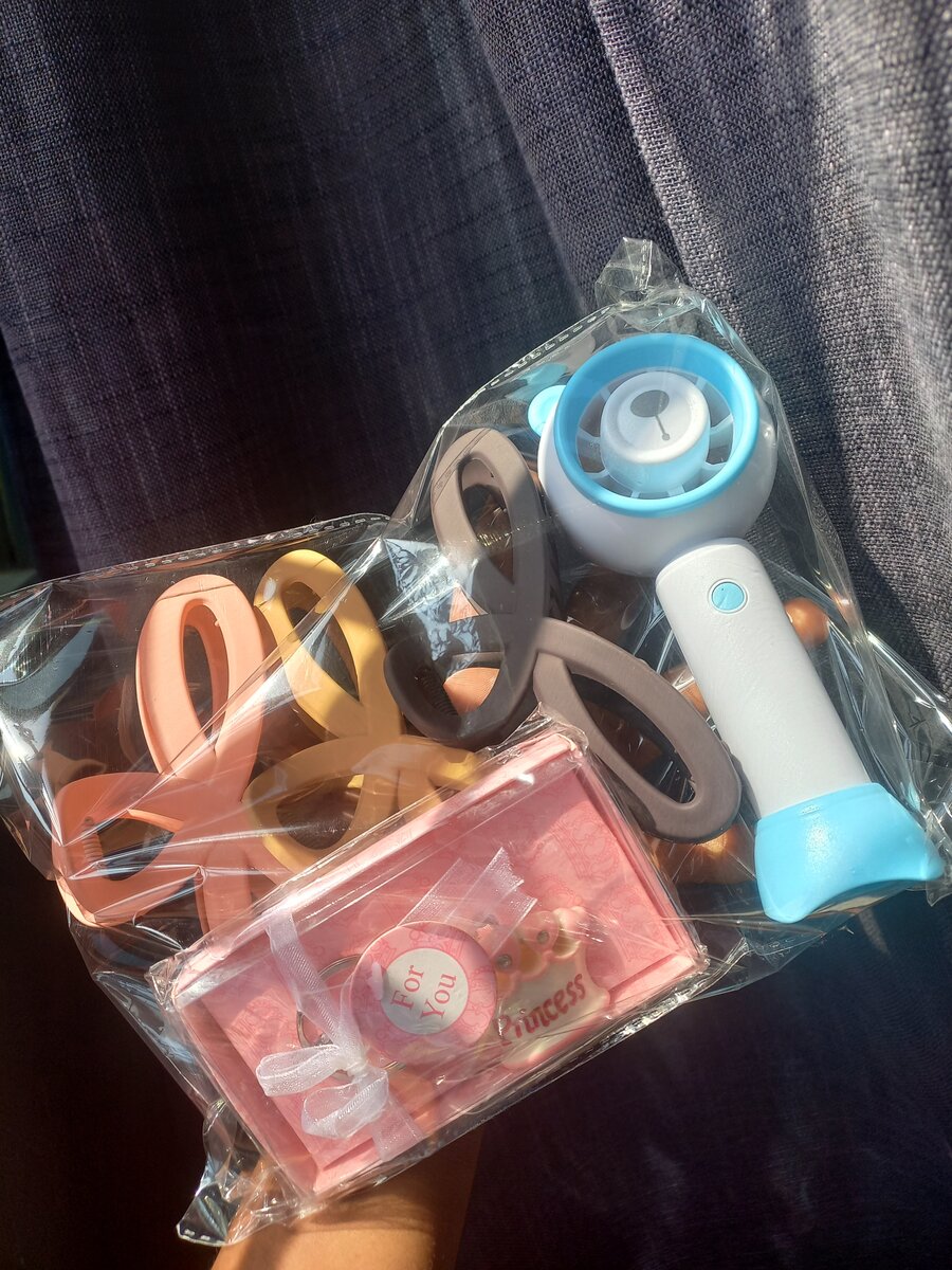 Package 4 Gift Combo includes ; 3 Hair Claw Clips 1 Mini Rechargeable Fan 1 Keychain Holder