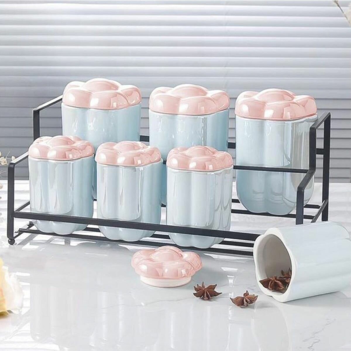 Porcelain Spice Jar Air Tight Multi color With Black Stand.