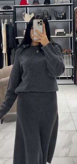 Трикотажный костюм свитер+плиссированная юбка, серый
