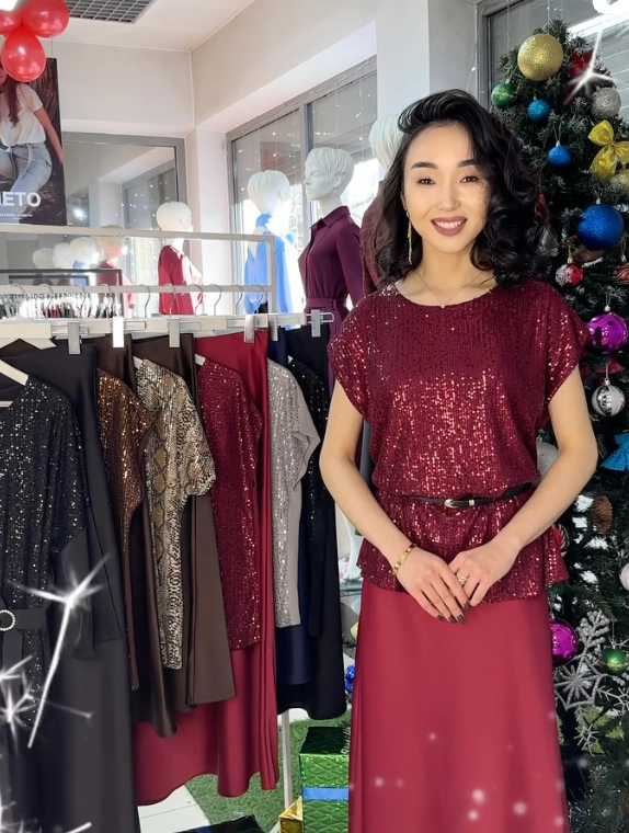 Юбка (ткань сатин) длина миди и макси + блуза (ткань креп-шифон) с пайетками