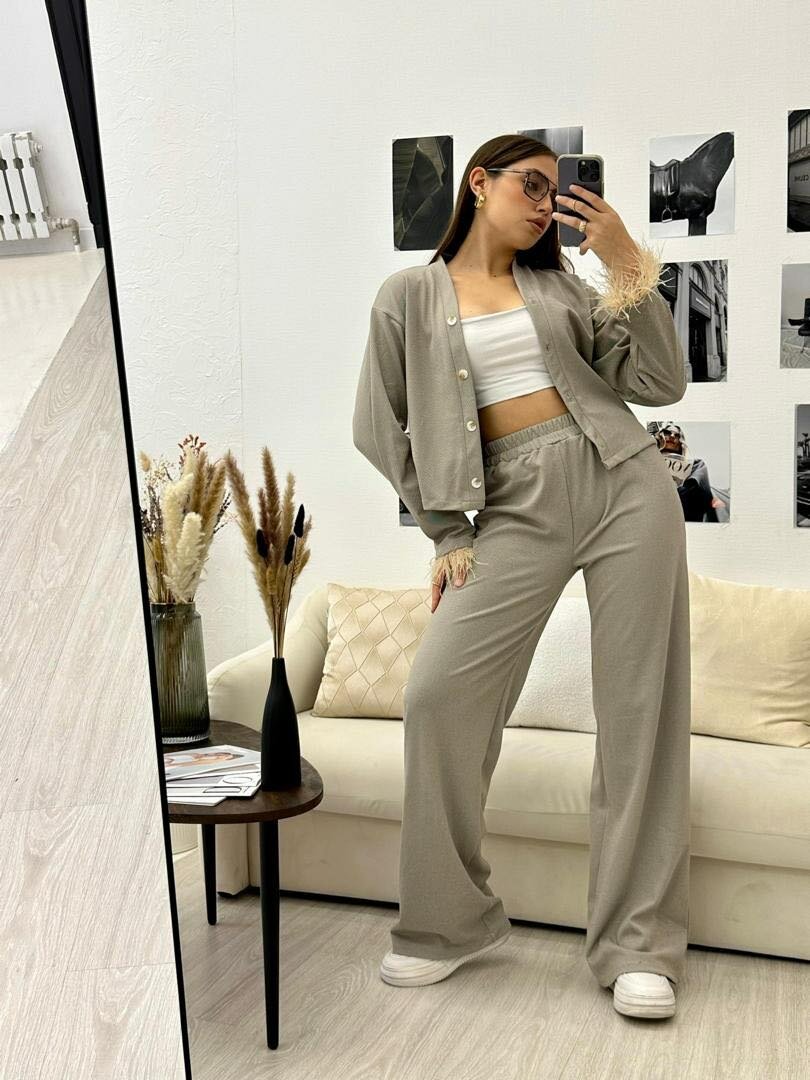 Костюм двойка с перьями