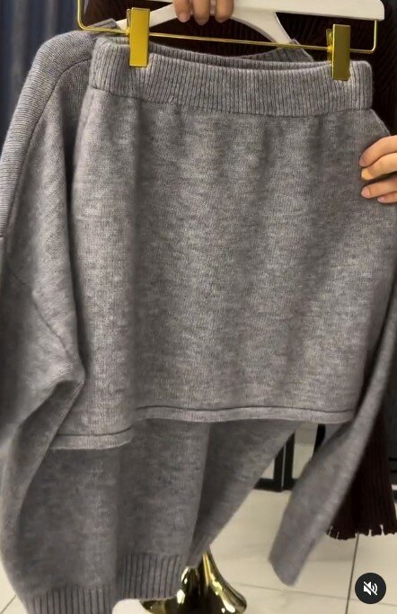 Комплект свитер+прямая, короткая юбка, серый меланж