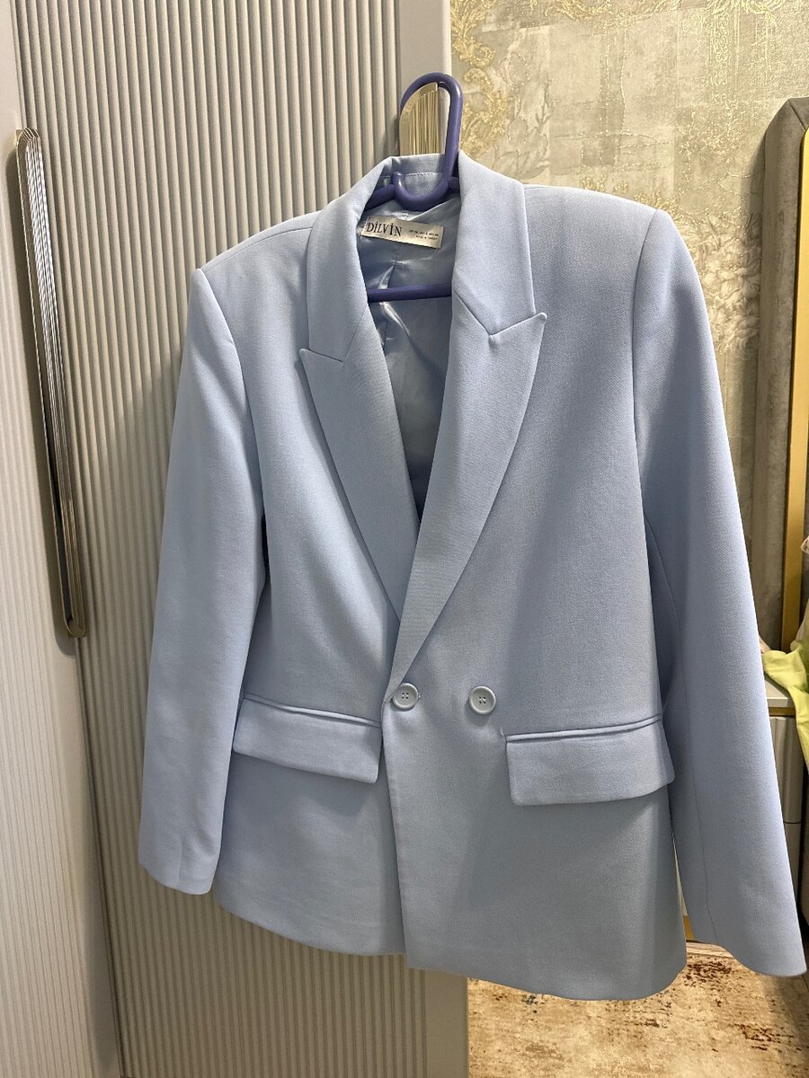 Женский пиджак цвета голубого, размер 36, S, одевался один раз на фотосессию на пару часов в отличном состоянии, хорошее качество, DILVIN, производитель Турция