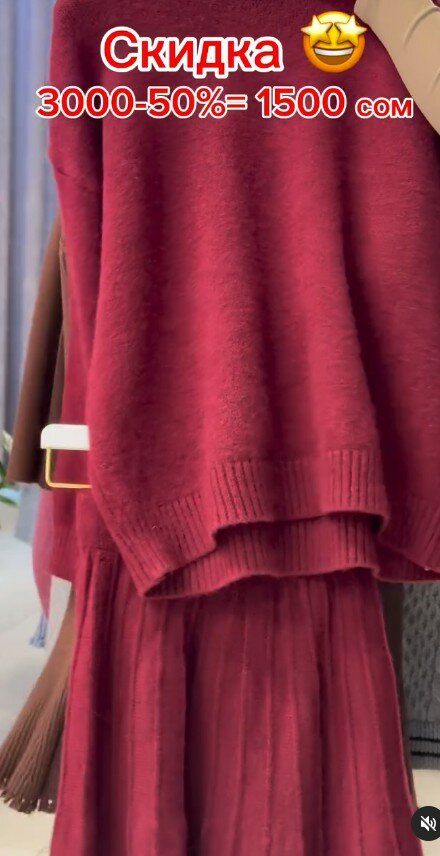Комплект свитер с глухим воротником+юбка, бордовый