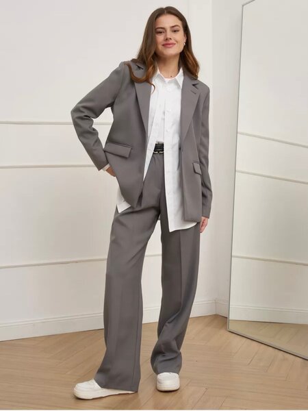 Костюм летний женский свободного кроя, состоящий из брюк палаццо и пиджака oversize - отлично впишется в ваш гардероб. Комплект двойка из льна с широкими штанами создаст удобный и комфортный наряд, который является трендом сезона.