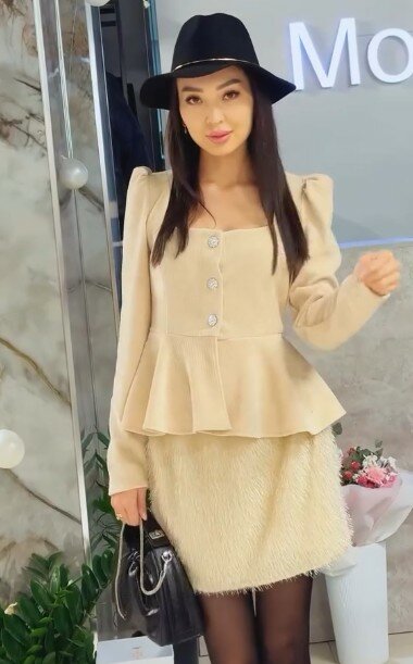 Костюм двойка с меховой юбкой