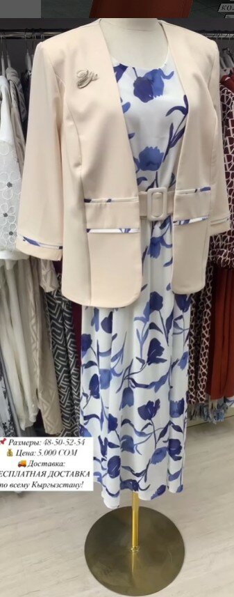 🎨 Цвет: Кремово-бежевый жакет, платье с синим цветочным принтом. Идеальный комплект, сочетающий элегантность и комфорт! ✨ Жакет в нежном кремово-бежевом оттенке и платье с синим цветочным принтом создают изысканный образ. Эластичная вставка и ремешок на талии обеспечивают удобную посадку и стильный вид. Легкая струящаяся ткань делает этот комплект отличным выбором для повседневной носки, работы или особых мероприятий.