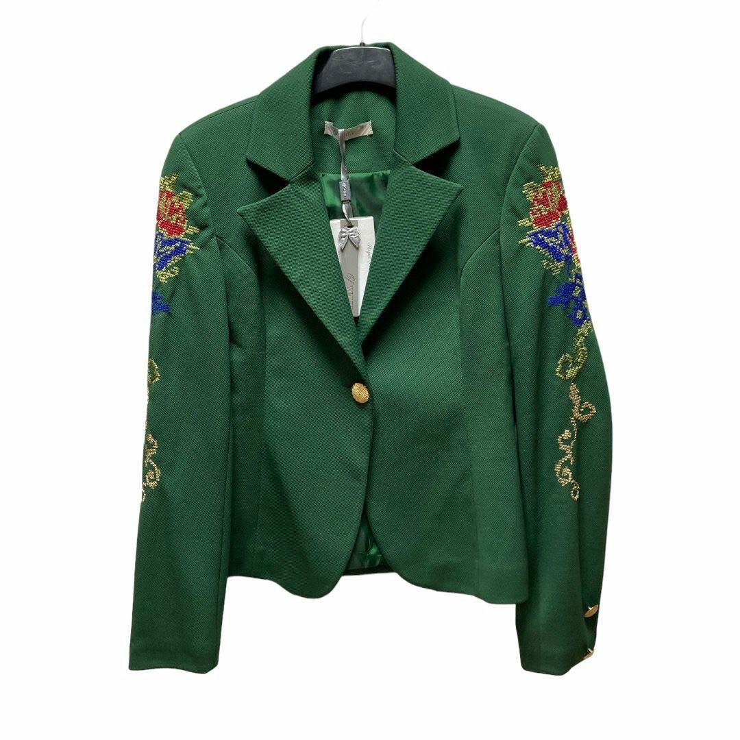 Зеленый жакет с цветной вышивкой - 38-40 размера