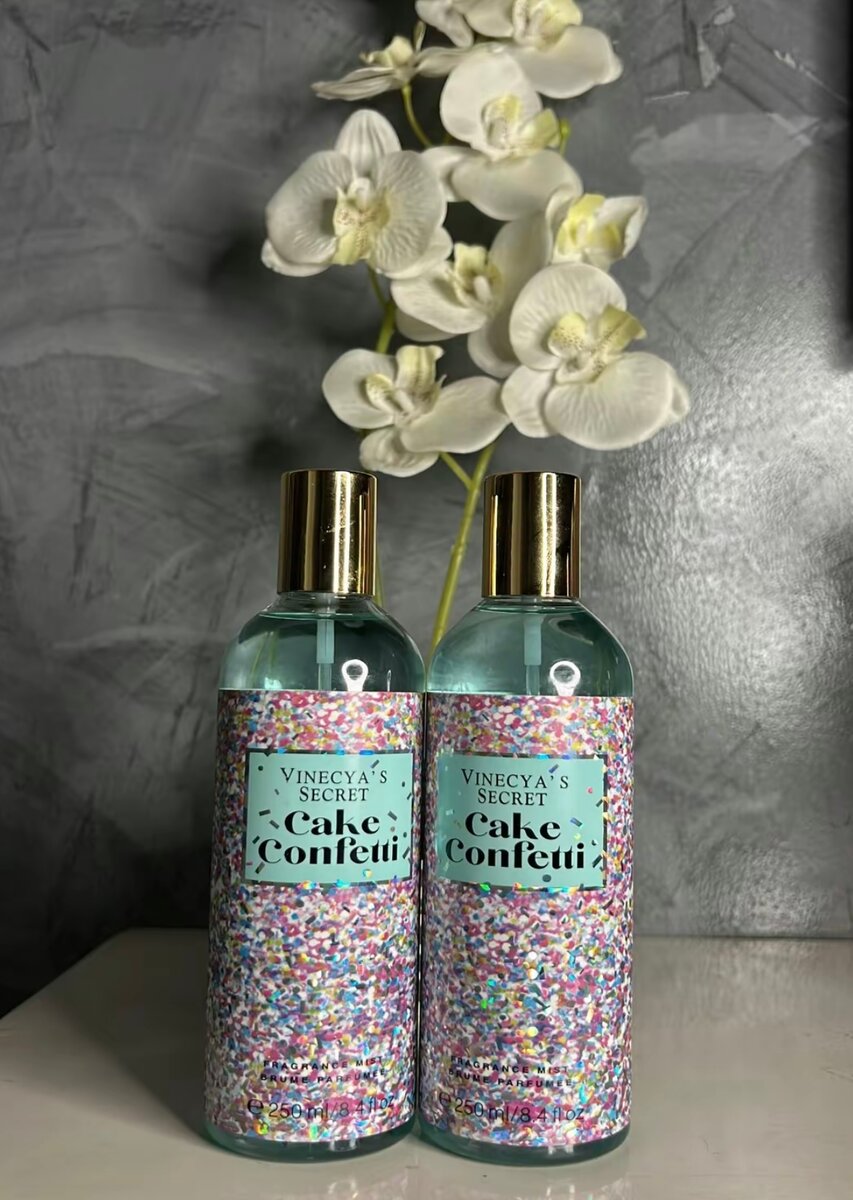 Découvrez l'irrésistible spray corporel Cake Confetti. Parfum gourmand pour une touche de douceur quotidienne. Idéal pour se rafraîchir et se sentir unique à tout moment.